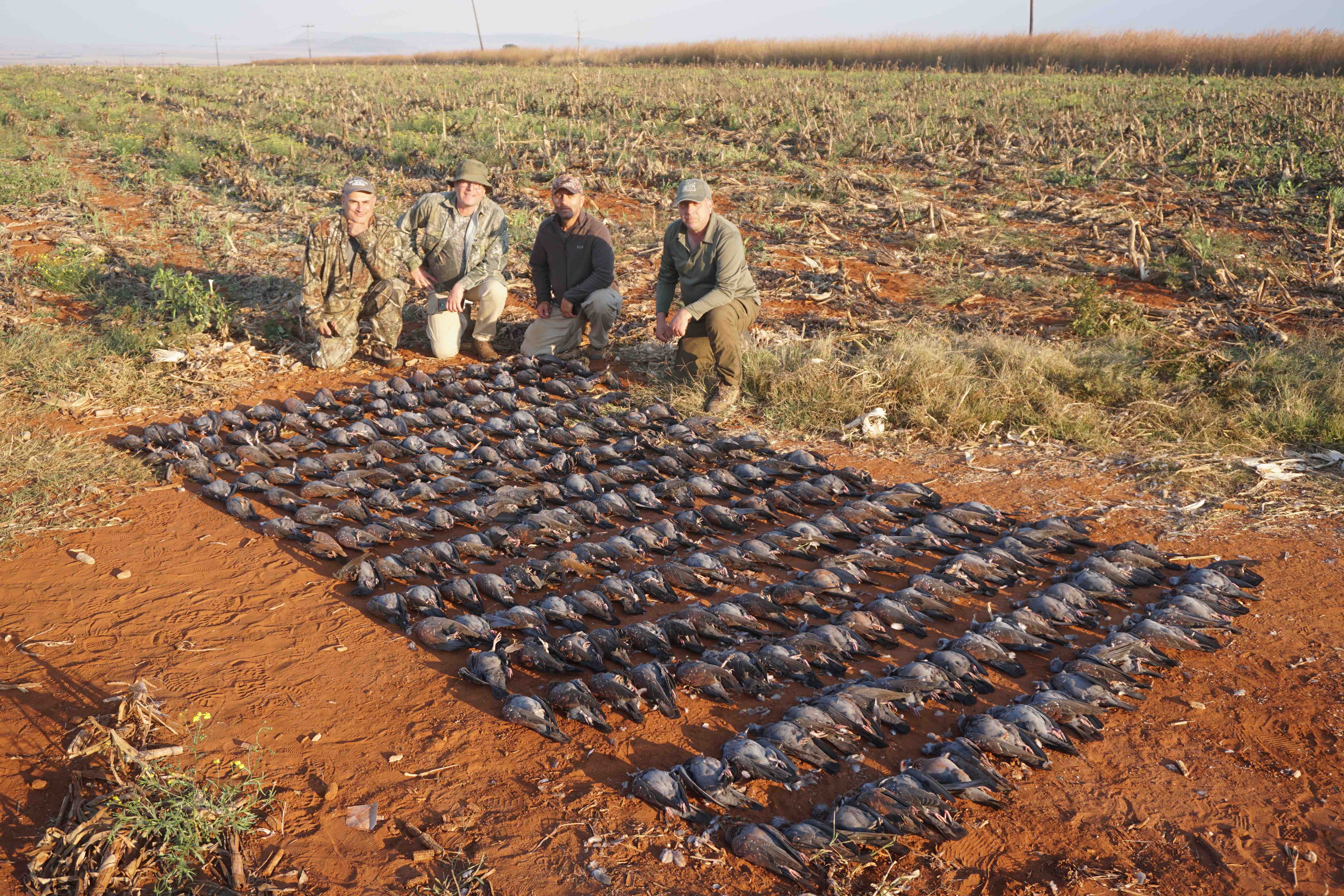 At Huntourage, we have access to some of the best dove and pigeon shooting grounds in South Africa! You will be shooting several species including the cape turtle dove, red-eyed dove, mourning dove, laughing dove, rock pigeons and much more! Contrary to popular belief, shooting doves and pigeons is very beneficial for the local communities, farmers and agriculture! These birds are considered as pests by most farmers in South Africa as they destroy more than third of their sunflower and peanut crops each year! High volume dove shooting is done in the mornings and afternoons, while decoyed pigeon shooting is more of a mid-day affair. It's not unusual to shoot more than 500 cartridges per hunter per session... Every single dove or pigeon will be donated to the local communities!