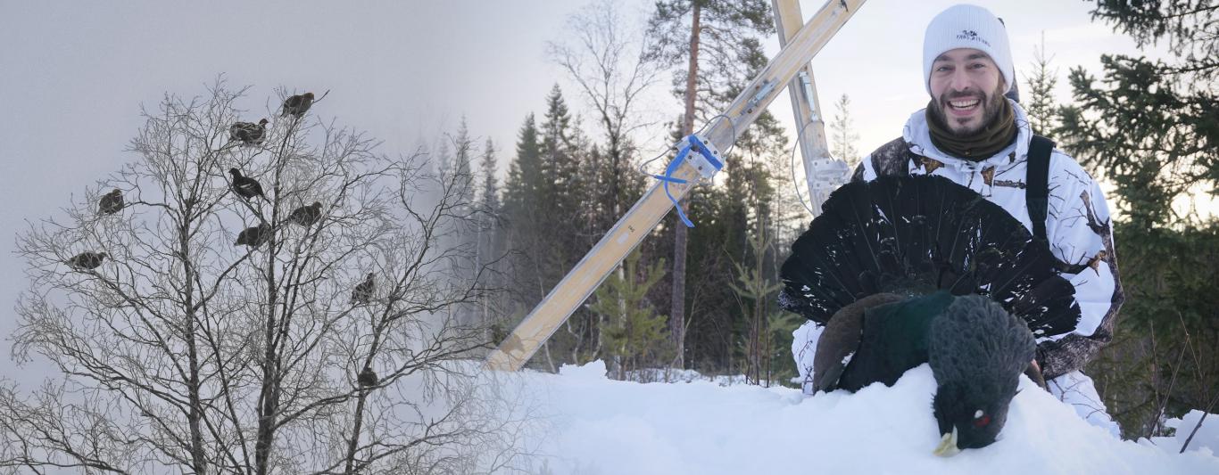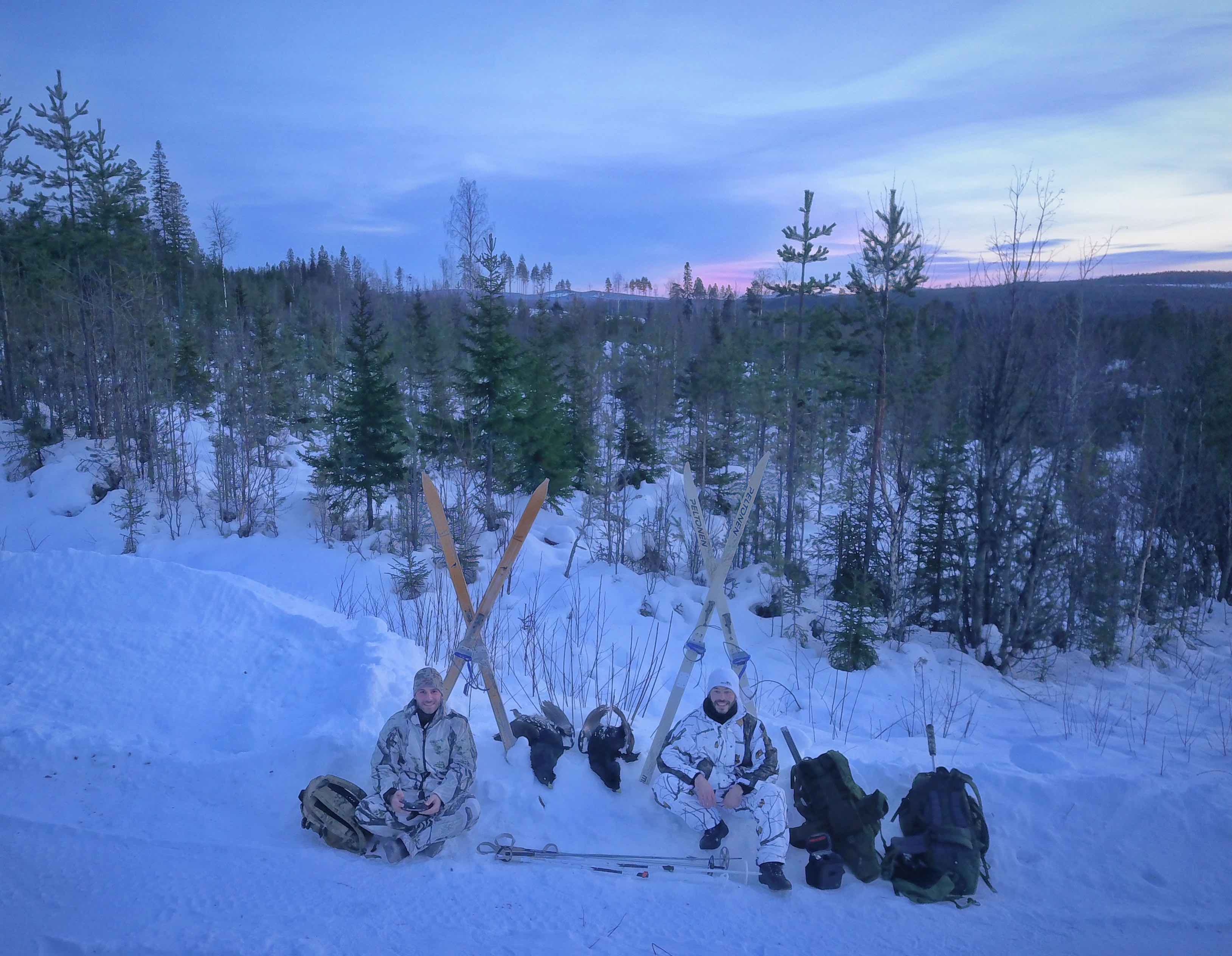 Snow stalking for Capercaillie and Black grouse in Sweden is an unforgettable winter hunting adventure! When the snow has fallen, you swap your hunting dogs for your cross country skis! Chasing the biggest grouse species in the world on skis is something really special... It is a magical winter escape where the challenge is way more than just pulling the trigger! This is where you really get to experience the spirit of Swedish lapland... Capercaillie snow stalking is by no means an easy hunt! You should be familiar with cross country skiing, you may have to shoot very far sometimes, and it can be freezing cold!